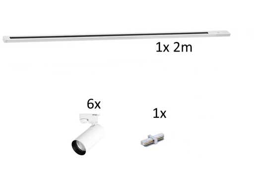 2 meter Railsysteem met 6 st railspot GU10 fitting met ring (2x)