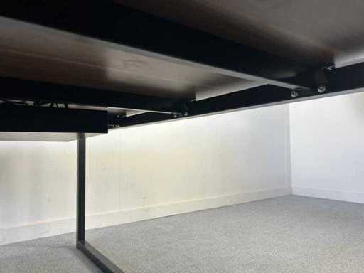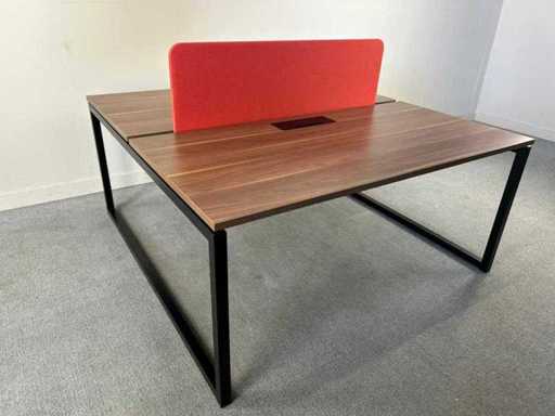 2-persoons werkbench met zwart metalen U-poot onderstel en een stijlvol donkerhouten werkblad. De set bevat een brede selectie scheidingspanelen in diverse kleuren. Paneel: Rood (120x37)