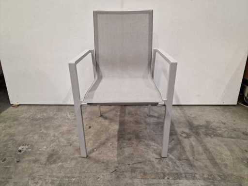 2 x Garden Prestige - Alu Stapelstoel Arosa met Armleuning Mistral Grijs - Textilene Lichtgrijs - Stapelbaar
