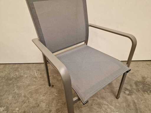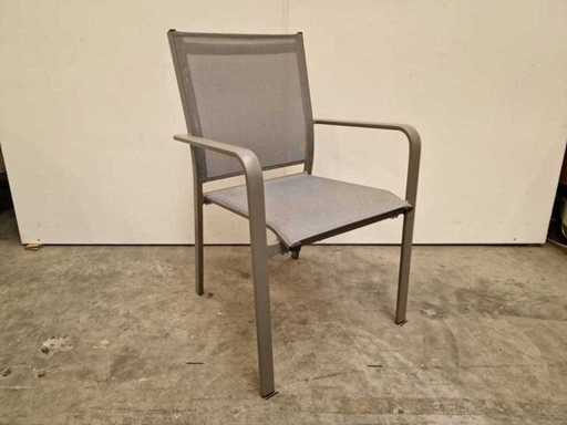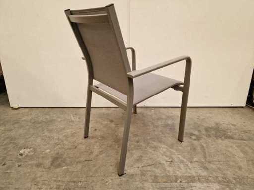 2 x Garden Prestige - Alu Stapelstoel Firenze met Armleuning Warm Grijs - Textilene Zilvergrijs - Stapelbaar