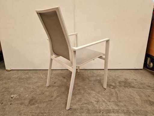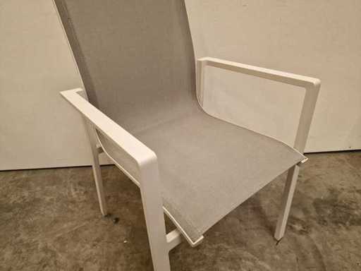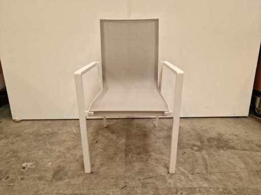 2 x Garden Prestige - Alu Stapelstoel Napoli met Armleuning Wit - Textilene Lichtgrijs - Stapelbaar