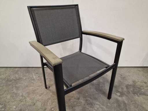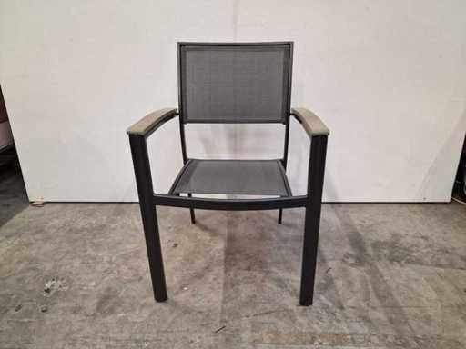 2 x Gardini - Alu Stapelstoel Antraciet - Textilene Zilvergrijs met Arm