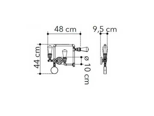 Industriele wandlampen met voorzien van 3 lichtpunten en een drukmeter, gebruik zowel in commerciele als residentiele ruimten. De wandlampen kunnen op eenvoudige manier aan de wand worden gemonteerd en zullen voor een bijzondere uitstraling zorgen. Te gebruiken met iedere lichtbron met grote fitting, E27 (niet inbegrepen) Afmetingen ca 115x 46x 8 cm. Materiaal: Staal/aluminium Ja.Type: wandarmatuur, dimbaar: ja. type: I-AMARCORD-PL3 / 8031440365512. Kleur bruin