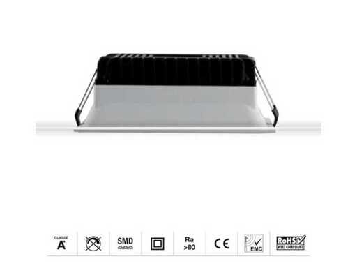Project inbouwspots geschikt voor gebruik in alle zakelijke en professionele ruimten, zeer snelle montage dankzij de geintegreerde led driver en het direct fit klem systeem. De armaturen geven warm wit licht en zullen in iedere ruimte direct een hoogwaardige uitstraling geven. Type: INC-XANTO-C-Q220 / 8031414861095 Lichtbron: inbegrepen, 30 Watt led. Lumen: ca 2700 Lm. Lichtbundelbreedte ca 98 graden. Lichtkleur: warm wit, Afmetingen ca 22 x 22 x 5.5 cm, Conditie: nieuw. Lotwaarde: € 1520,-