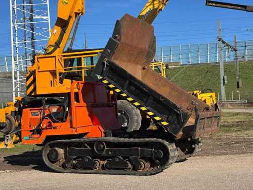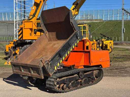 Rups Dumper; Start rijdt en dumpt/ Kiept naar behoren; V.V. 2x rijsnelheid; kiepbak 180x150x40cm; lage originele urenstand Werkbreedte: 150cm; Rups Breedte: 32cm; Kan in vrachtwagen geladen worden voor transport;