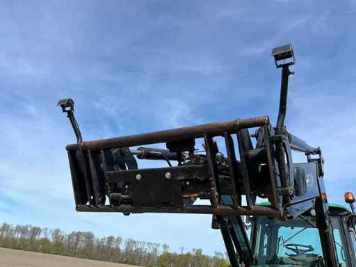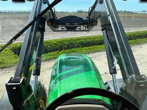 Voorzien van 6-Cil. “John Deere” Dieselmotor; aftakas: 540/540E/1000 rpm; 3 dubbelwerkende hydraulische ventielen; hydraulische remventiel; drukloosretour; verstelbare trekhaak; ondertrekhaak; hefinrichting; spatbordbediening; fronthefinrichting; frontaftakas; 1 dubbelwerkend hydraulische ventiel voor; “Trima” voorlader met hydraulische snelwissel; extra hydraulisch ventiel op voorlader; 2 camera’s aan voorlader met monitor; ; vooras geveerd;