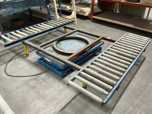 Heftafel met gelaste manuele draaikrans en 2x Moody rollerbaan. Zonder gereedschap