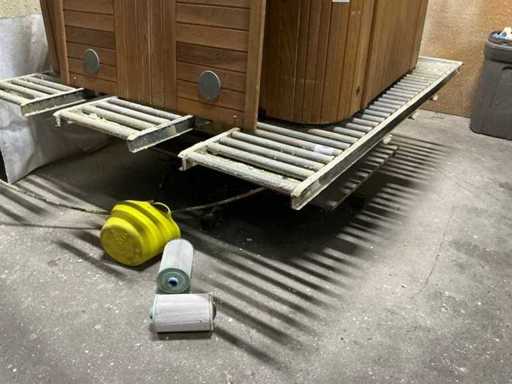 Heftafel met gelaste manuele draaikrans en 3x Moody rollerbaan. Onderste draaikrans is elektrisch aangedreven (230v). Zonder gereedschap en jacuzzi.