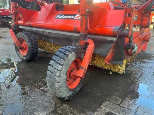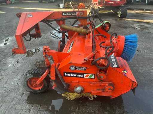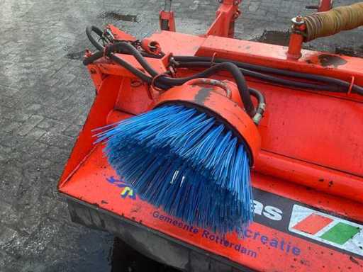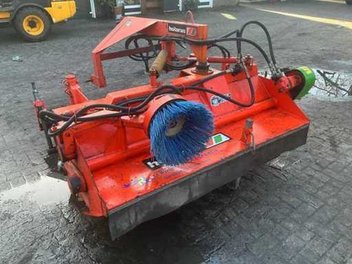 Voorzien van zij-bezem, hydraulisch aangedreven.