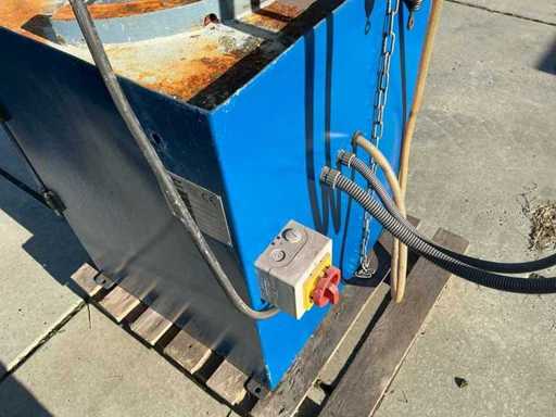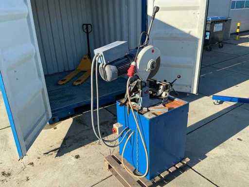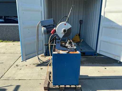 Voorzien van: Metaalafkortzaag MAXX Machinery Holland model V 315 (bouwjaar 2005), 400 V, 3 kW motorvermogen, eigen gewicht ca. 250 kg, uitgevoerd als industriële cirkel/metaalzaag op onderkast, met indicatieve afmetingen ca. 80 × 80 × 170 cm (l × b × h). zaagbereik van ca. Ø100 mm of 90×90 mm bij 90° en ca. Ø70 mm of 70×70 mm bij 45°, met een verstekhoek instelbaar van 0° tot 45°. Vermogen 2,2 kw,