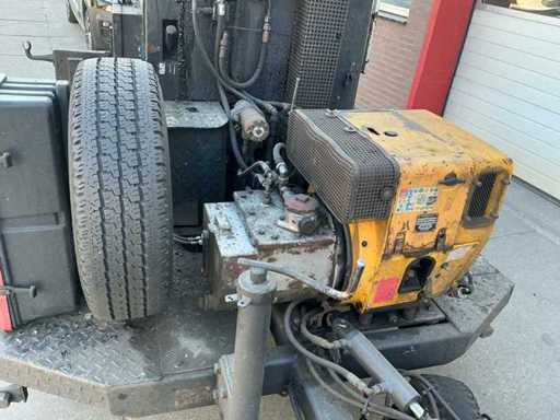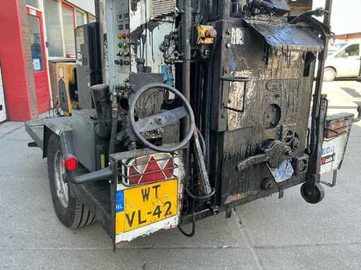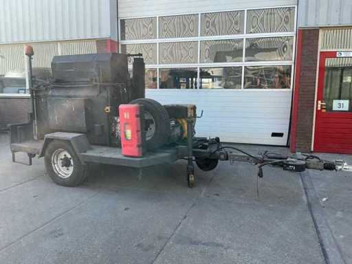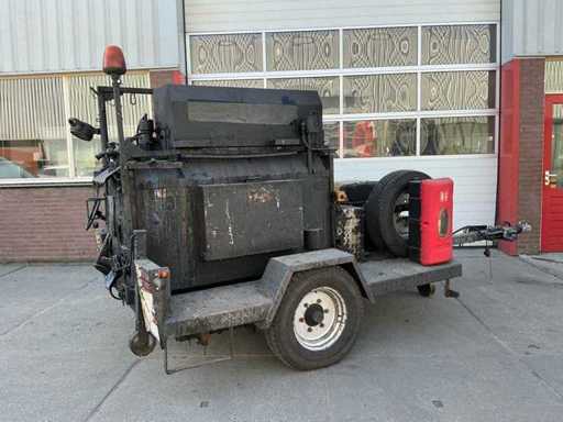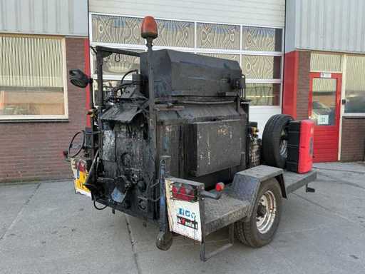 Zelfrijdend, met werkende bitumenpomp, indirecte verwarming, handmatige steunpoot, aanhanger koppeling, werkverlichting, zwaailamp.