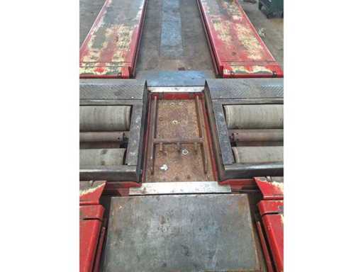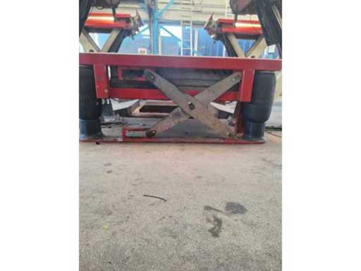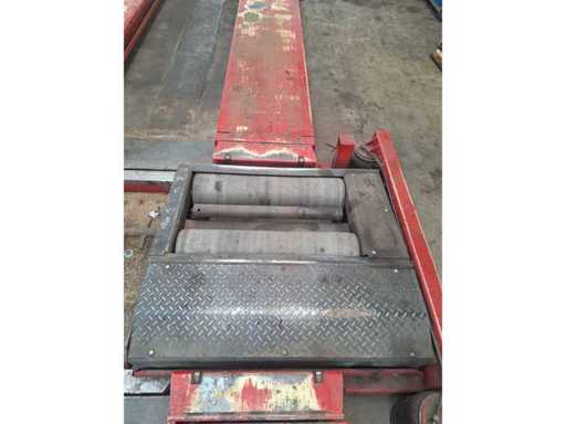 Remmenbank voor truck met onderplaat. Remmenbank kan pneumatisch tegen onderkant voortuig worden getild.