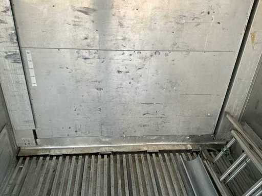 De robuuste staalconstructie in combinatie met de geïntegreerde koelunit maakt deze container geschikt voor professioneel gebruik in logistiek, voeding, farmacie en opslag.