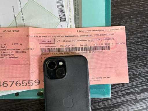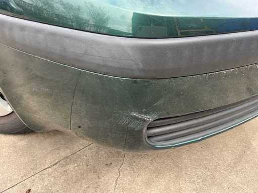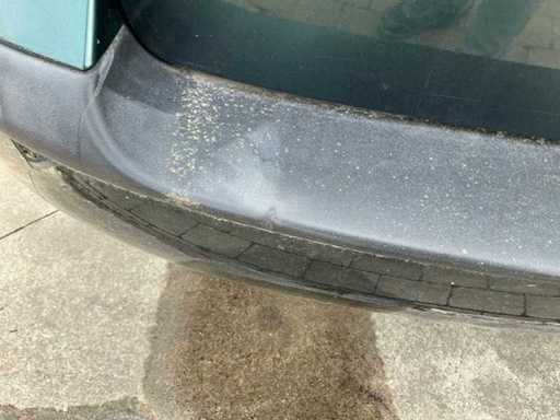 De carrosserie vertoont gebruikssporen conform leeftijd, waaronder krassen en beschadigingen aan de bumpers en lichte slijtage aan diverse carrosserieonderdelen. Technisch werd de wagen gekeurd met geldigheid tot 03/09/2023, waarbij enkele aandachtspunten werden genoteerd, waaronder bevestiging van de uitlaat, lichte vloeistoflekkage en een beschadiging of verkleuring van een ruit.