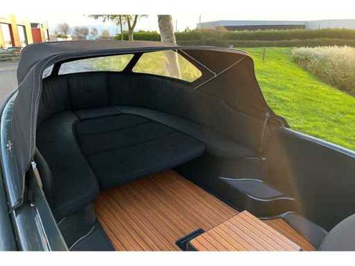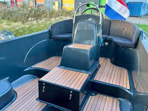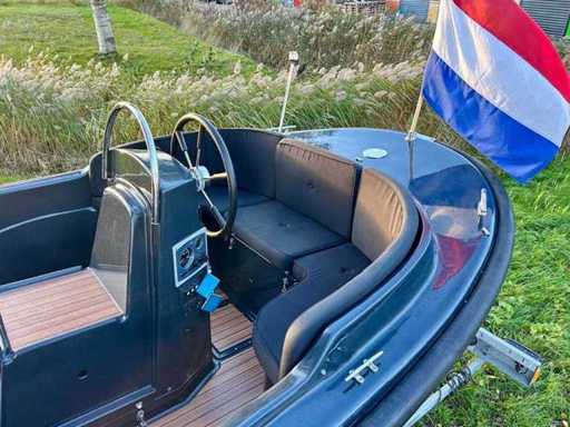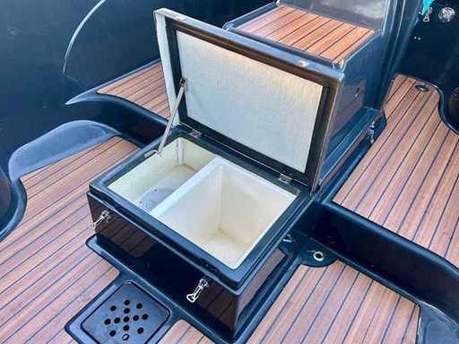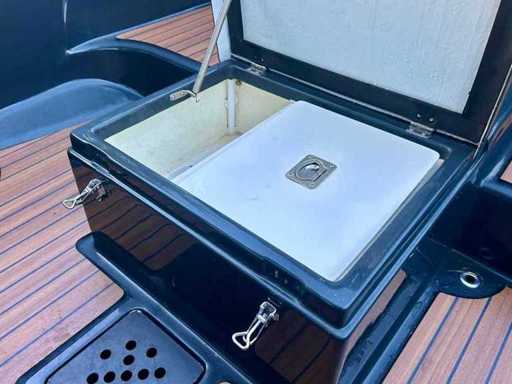 Compleet uitgevoerd en onder andere voorzien van een RVS frame buiskap met achterzeil, afneembare RVS zwemtrap, luxe stoffen kussenset, uitneembaar zonnedek, ingebouwde navigatieverlichting, toplicht, luxe teaklookvloer, afsluitbare geïsoleerde koelkist, 12V aansluiting en een automatische bilgepomp.