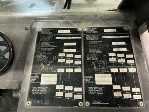 Voorzien van: 4-cilinder Perkins 404 C 22 Turbo-motor met 60 pk en 44,7 kW.kanteling van de mast (12°), elektro-hydraulische bediening om de cabine te heffen, en toegang te geven tot de mechanische onderdelen voor onderhoud, banden voor 275/80 R20, achter 27.10 - 12 14 , hydraustatische aandrijving, elektrohydraulische achteruitversnelling, Rexroth hydraulische motoren voor voorwielen, Poclain motoren voor achterwielen, versnelling vooruit/achteruit 1/1, maximale rijsnelheid 14 km/u, differentieelblokkering, totale breedte 1,44 m, totale hoogte (inclusief beschermkap) 1,99 m, totale lengte 4,04 m, bodemvrijheid 260 mm, veiligheidsgordel, urenteller, ruitenwissers voor en achter, hydraulisch differentieel met elektrohydraulische bediening, vergrendelbare parkeerrem schakelaar, schakelpook voor achteruitrijden op de stuurkolom.