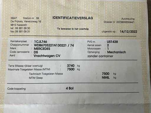 2008 Mercedes Vario 818DE containersysteem (multilift) - functioneel