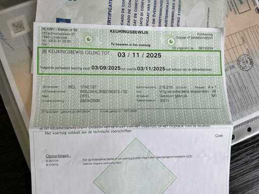 De wagen is technisch start- en rijklaar en beschikt over een geldige keuring tot 03/11/2025. De carrosserie vertoont gebruikssporen conform leeftijd en kilometerstand.