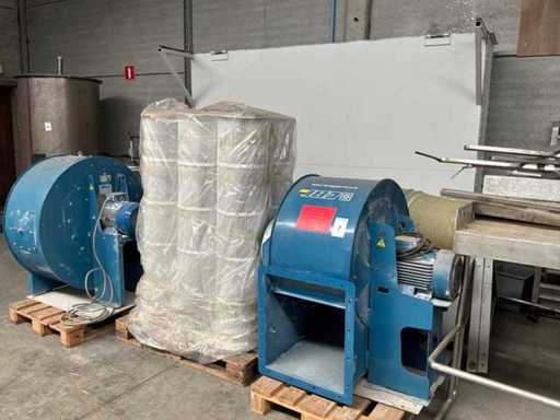 Reeds gedemonteerd, bestaande uit 2x turbine 5,5 kw, filterelementen, flexibels en bevestigingsbeugels