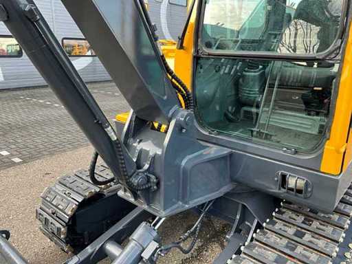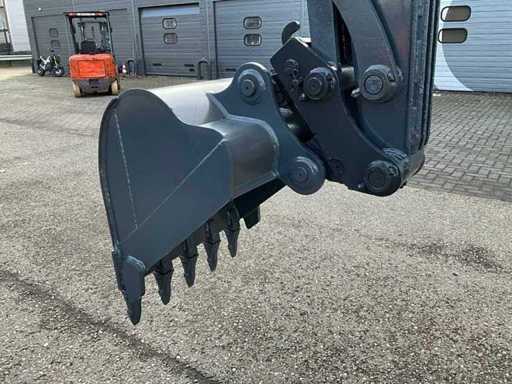 Mechanische snelwissel, Dieplepelbak met tanden, extra hydraulische functie, schuifblad, stalen rupsen met rubber pads,