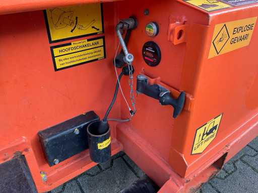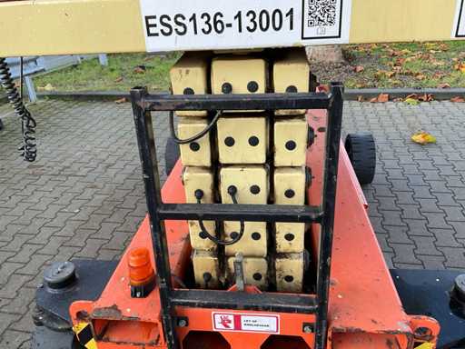 Gebruik: binnen en buiten; platform vloerhoogte 11800 mm; uitschuifbaar platform afmeting circa 3240x1400 mm; interne acculader 230 Volt; kooibediening; working condition