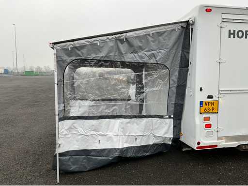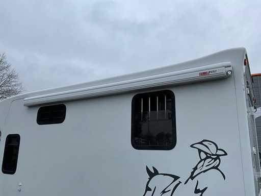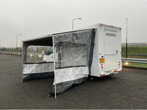 Elektrische ramen + spiegels, cruise control, airco radio, dubbele cabine, luifel met zijschermen, zadel ruimte links, waterhaspel met tank rechts, rechts oploopklep, achter deur, 2 paards paardenwagen