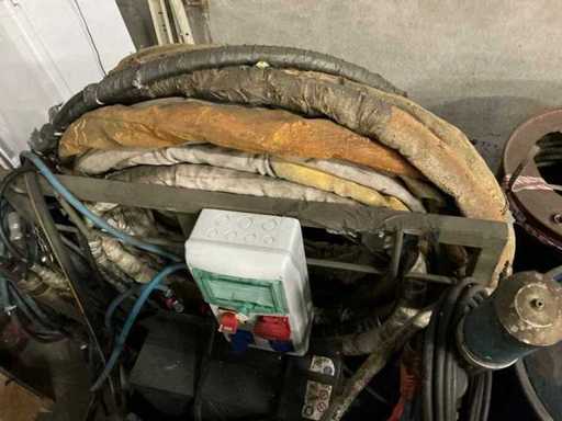 Op verrijdbare kar met totale afmeting circa 1,70 x 1,20m en 60lm slang