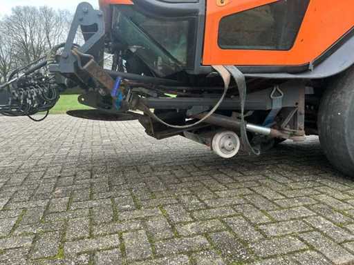 Voorzien van: Vin nr: SA95F5LDXE0068766 ,De Johnston VT650 (bouwjaar 2014) is een compacte straatveegmachine met dieselmotor van ca. 100–120 pk, hydrostatische aandrijving, voorborstel met zijborstel(s) en centrale zuigmond, vuilcontainer ca. 6,5 m³, waterinhoud ca. 850–1.000 liter, toegestane max. massa 7.500 kg, treingewicht 8.250 kg, aslasten 3.500 kg voor en 4.240 kg achter en afmetingen ca. 5,3 × 2,1 × 2,9 m (L×B×H). Voordat de boordcomputer kapot ging foto van de uren+km stand genomen: Urenstand: 12004 Km stand: 75438. Hierna niet veel meer gelopen.