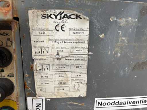 De Skyjack SJ12 is een elektrische verticale mastlift (vertical mast lift) - Deze Skyjack SJ12 elektrische masthoogwerker, bouwjaar 2014, is een compacte en betrouwbare oplossing voor werkzaamheden op hoogte (5,5 m) in binnenruimtes en op vlak terrein. Dankzij het slanke ontwerp en de elektrische aandrijving is deze hoogwerker bijzonder geschikt voor magazijnen, installatiewerk, onderhoud, afbouw en lichte montagewerkzaamheden.