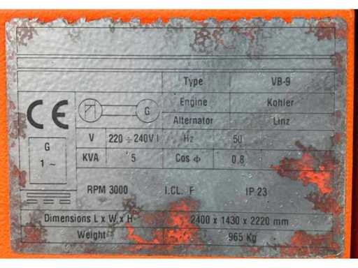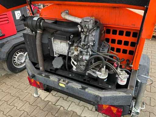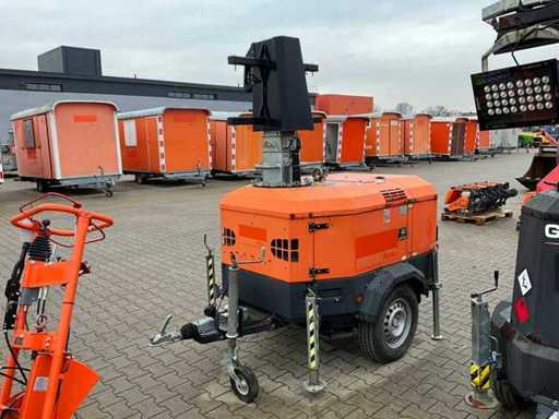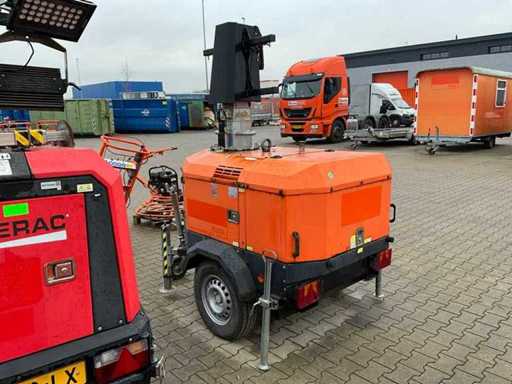 lengte 2400 mm; breedte 1450 mm; hoogte 2400 mm; Kohler diesel motor; Linz alternator; geen lamp; 230 Volt aansluiting; 5 kVA; ingebouwde brandstoftank; hydraulische mast; maximale masthoogte circa 8 meter; afgelezen urenstand 1899 uur; lichtsensor; heftruck vorksleuven; 4x stelvoet; hijsoog; not working; (de koper dient bij transport over de weg zelf te voorzien in een geldig kenteken; een 7 polige aansluitstekker of verloopstuk met kabel (verlengsnoer kan ter plaatse tegen betaling aangekocht worden); eventueel extra lichtbalk); Belgische kentekenpapieren; gelijkvormigheidsattest; (Q-ABN-328)
