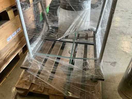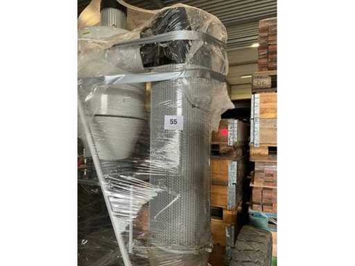 Cyclone afzuiging op metalen frame, verrijdbaar.