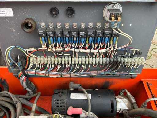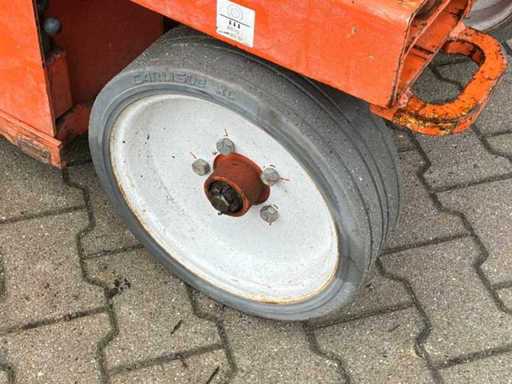 Platform vloerhoogte 6100 mm; uitschuifbaar platform afmeting circa 3020x710 mm; interne acculader 230 Volt; kooibediening; 230 Volt stroom aansluiting platform; transporthoogte circa 1750 mm; working condition;