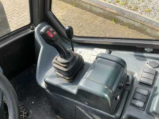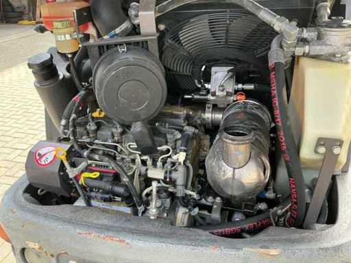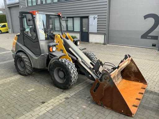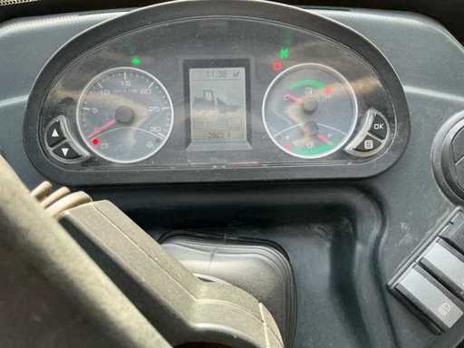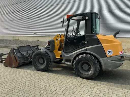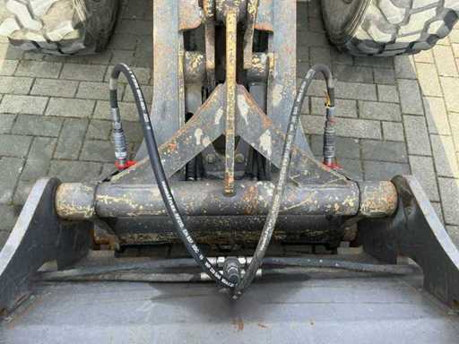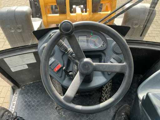 Voorzien van: 3-in een bak 1950mm, vorkenbord met lepels 1100mm, hydraulische snelwissel, transportgewicht 5410 KG, breedte 1570 mm, hoogte 2490 mm, draaicirkel 3700 mm, Deutz TCD 2.9 L4 Stage V / 55,4 kW / 75,3 PK, 30 km/u hydrostatische aandrijving met hoog en laag, inschakelbaar sperdifferentieel in beide assen, 1e extra functie proportioneel op joystick, zwaailamp, afmetingen (LxBxH): ca. 5,35 m x 1,85 m x 2,45 m.