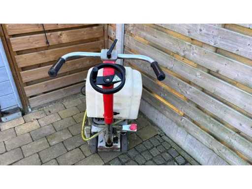handgeleide benzine-vloerenzaag die wordt gebruikt voor het zagen van beton en asfalt (bijvoorbeeld sleuven, opritten of vloeren).voor zaagblad 350 mm zaagdiepte 130 mm