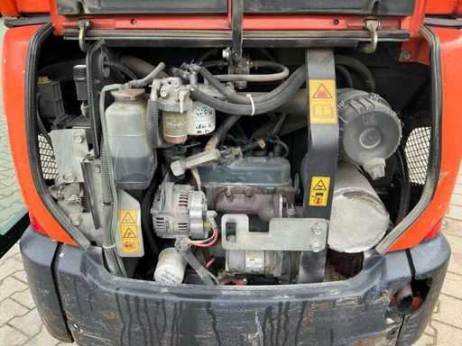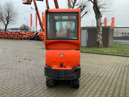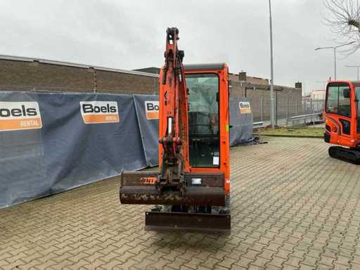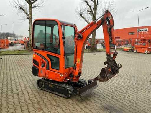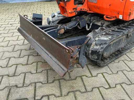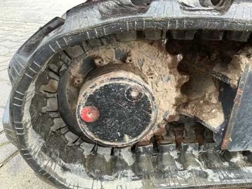 Gesloten cabine; rubber rupsbanden; rupsen hydraulisch in breedte verstelbaar 990 - 1240 mm; maximale uitstorthoogte 2250 mm; extra hydraulische functie; snelwissel; dozerblad breedte 1250 mm voorzien van verlengstuk; working condition;