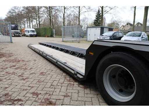 Lengte uitschuifbaar tot max 1796cm * afstand hart koppeling tot achterzijde voertuig (B) 1196-1676 cm * technisch max massa voertuig 38000lg (toegestaan 36000kg) * aantal wielen 8 * wielbasis 1112cm * max constructiesnelheid 100 km/h * voorzien van Tridec besturing en afstandsbediening (handgang etc.) * Tridec luchtvering met memory standen * 2 x vetpomp voor automatische smering * 4,80 mtr uitschuifbaar * LED-verlichting * Paragraaf 70 ontheffing (specifieke vergunning voor exceptioneel transport in Duitsland) * recent voorzien van nieuwe APK