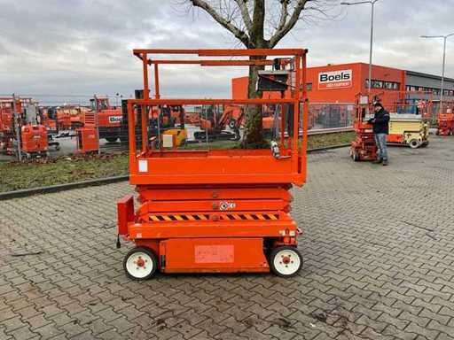 Gebruik: binnen; platform vloerhoogte 5800 mm; uitschuifbaar platform afmeting circa 2500x650 mm; interne acculader 230 Volt; kooibediening; 230 Volt stroom aansluiting platform; transporthoogte circa 1750 mm; working condition
