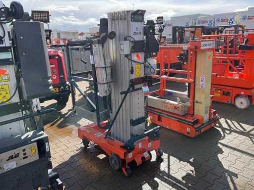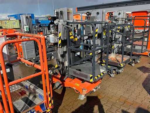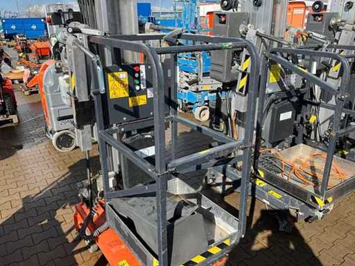 compacte personenlift; voorzien van 4 regelbare steunvoeten; toepassing: onderhoud / service / montagewerkzaamheden; uitvoering: staal / aluminium; verrijdbaar; 230 Volt; netstroom; 12 Volt accu; not working;