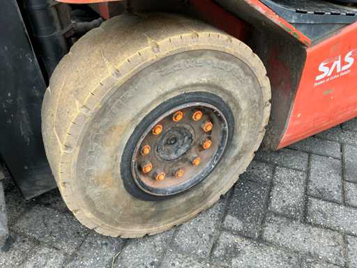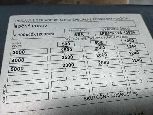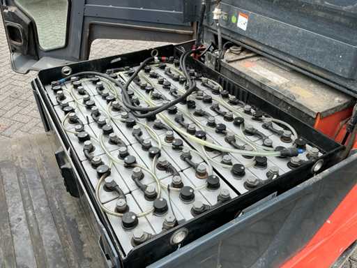 Voorzien van: Grammer mechanisch geveerde stoel, mini-lever bediening op armleuning, verwarmde achterruit, verwarming, schuiframen, opklapbare achterruit, vol rubber non-marking banden, Cascade vorkenbord, hydraulisch verstelbare lepels, Max. 1700mm h.o.h. Lepels, side-shift,trekhaak, verlichting, voltage 80V, tractiemotor 20kW, hijsmotor 25.5kW,