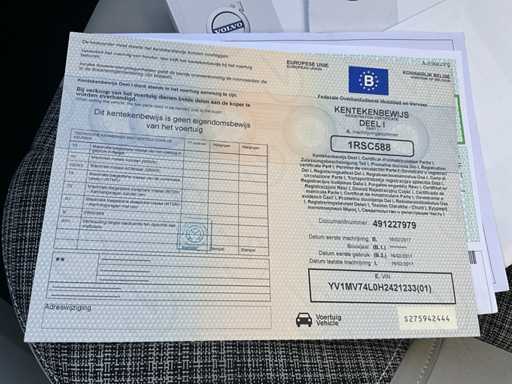 Aanwezig : kentekenbewijs deel I en II, gelijkvormigheidsattest en keuringsbewijs geldig tot 16/02/2026.