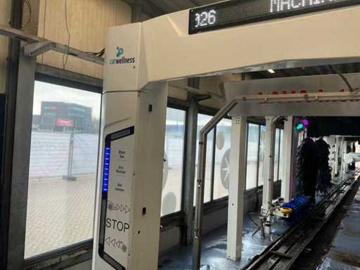 52,6Kw, tellerstand: 343846 (zal nog oplopen) voorzien van: wachttijdvoorspeller, transportband positioneer platform, 4"kettinglengte 33,6 meter, velgbescherming links/rechts, geleidenblokken, energieketting, ondersteuningskolommen, entreeboog, frontbekleding type Zenit, Linear Lighting programma-indicatie met boomerang verlichting, LED-Lichtkrant, Super active-foam door middel van doseerpomp, Infinity mousse boog, dakborstelstation type Seperate, Link-Tex dakborstel, wielreiniging Prewash rotatie HD-techniek, horizontale wielborstel type Rocker, Polyethyleen boorstels, 5-borstelstation, link-foam borstels, chassiswasser, naspoelen geïntegreerd op borstelstation, prewash verticaal-en horizontaal ocsillerende HD-Techniek 70 bar 84L/min, conservering combinatieboog, frontbekleding, pictorgramontwerp type First Class, 3-borstel polishstation type Autonome met zijborstelhoogte 2000 mm, naspoel en wasboog, drooginstallatie, Turbofan Dakdroger 2x5,5kW, Turbofan rondom droger 4x7,5kW, stuurstroomkabel, kantelbare dakdrogermond, textieldroging met middenoverdekking, uitrij-conrolebox, koppelingssysteem, wegtransport, voedingskabels, RVS slanghaspel met veerretour voor 35 meter slang, RVS zwenkbare muursteun voor RVS slanghaspel 35 meter, 14x MPT RGB ledspot kompleet