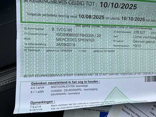 Boorddocumenten aanwezig : kentekenbewijs deel I en II, gelijkvormigheidsattest, identificatieverslag en keuringsbewijs was geldig