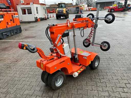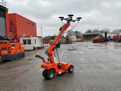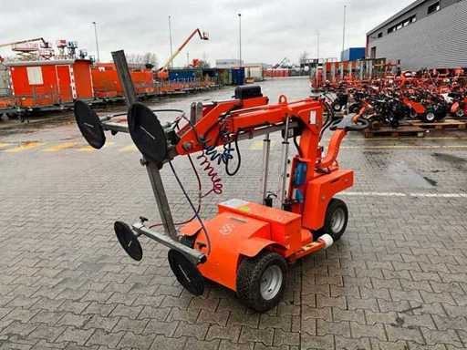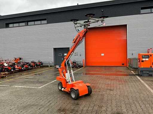 Liftbare telescopische / kantelbare arm; voorzien van 2 onafhankelijke vacuüm units; voorzien van 4 verstelbare zuignappen diameter 300 mm; 4 wielig; standaard voorzien van stabilisatoren; gebruik indoor en outdoor; acculader 230 Volt; draadbediening; afgelezen urenstand 2907 uur; working condition;