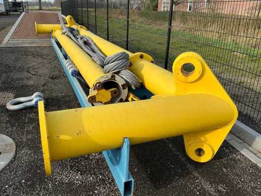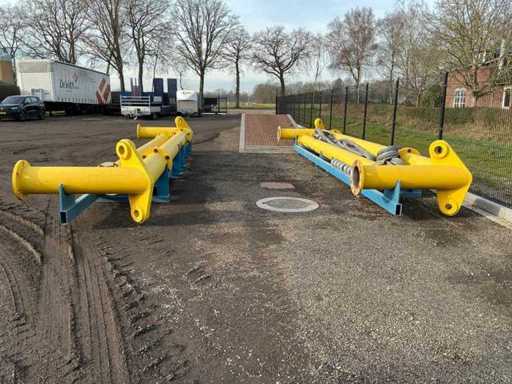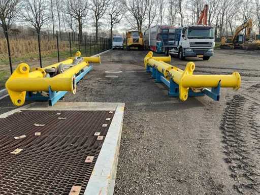 Voorzien van: 8x harpsluiting (L:52cm B:38cm), 4x harpsluiting (L:64cm B:47cm), opbergstellingen met ingang vorken, 4 hijskabels, alle bijbehorende bouten en moeren, 2x stabilisatiestang