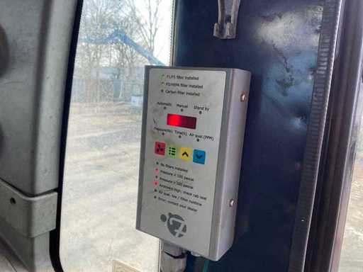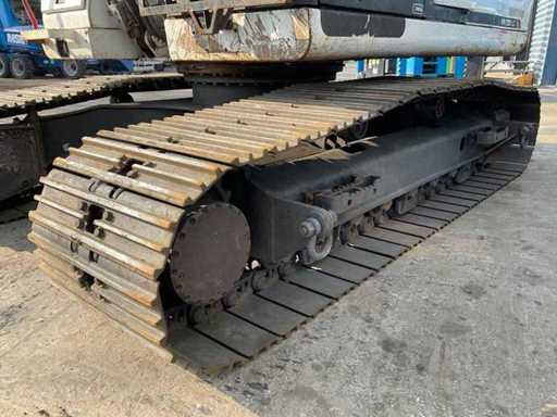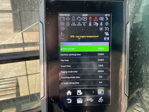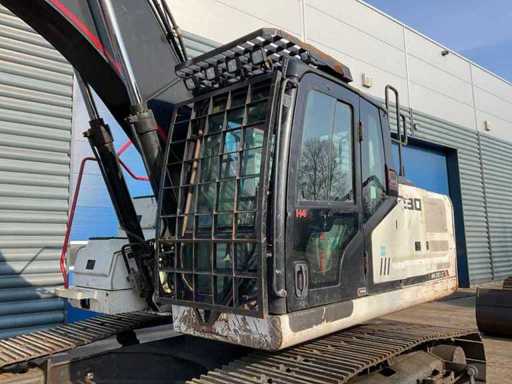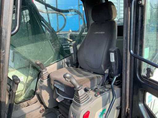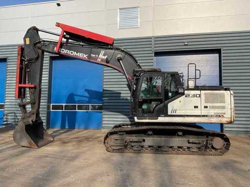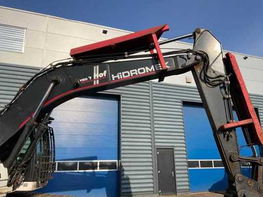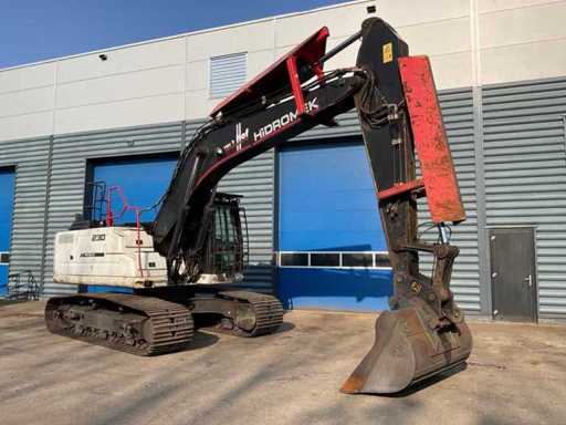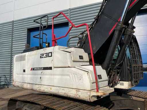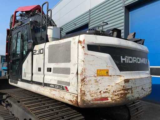 overgangsmodel naar HMK 230 LC, voorzien van: cabine overdruksysteem, touchscreen display, camerasysteem, CW30 hydraulische snelwissel, hydraulische functies op giek, Eurosteel graafbak, val beveiliging op giek, veiligheids rek voorruit, automatisch smeersysteem,