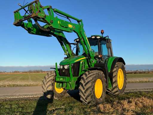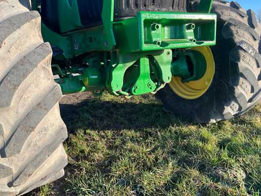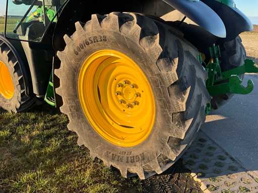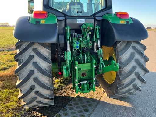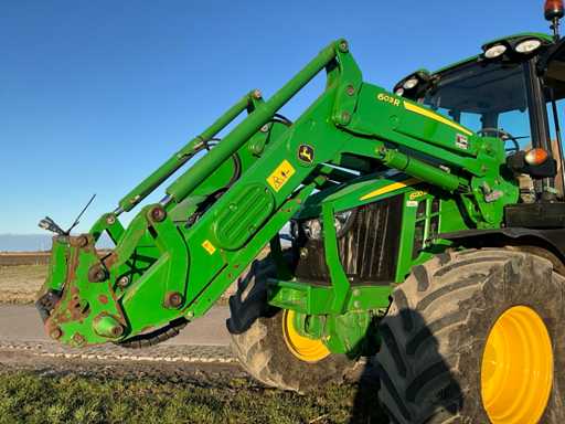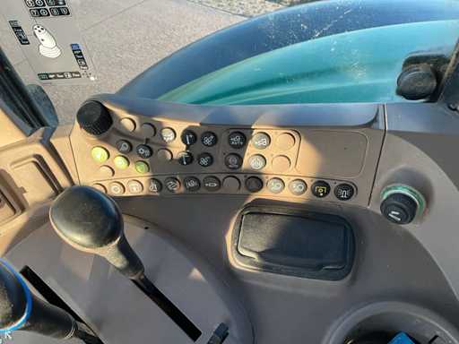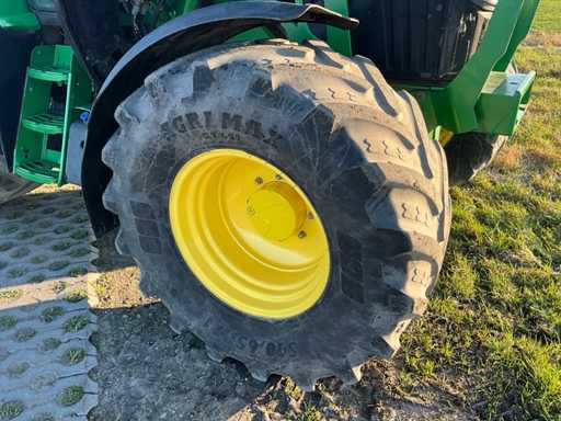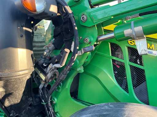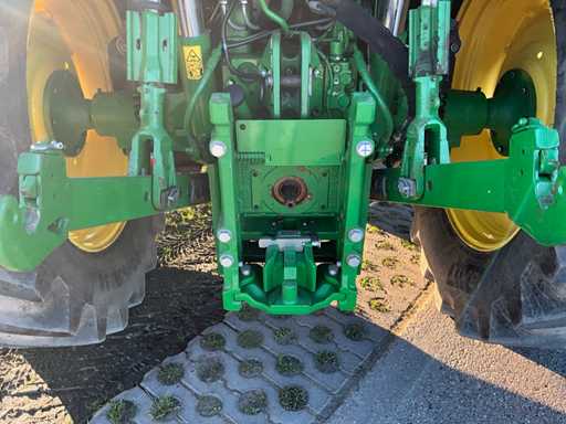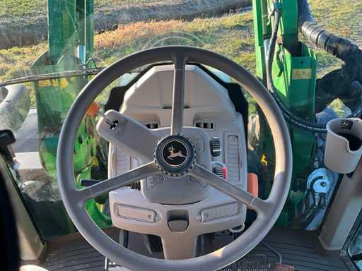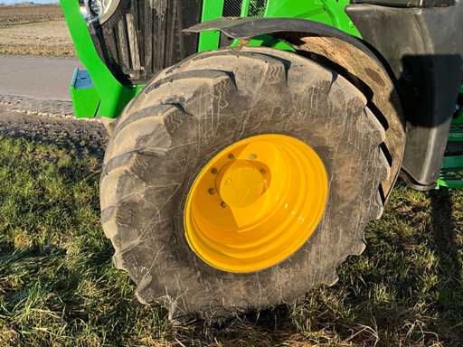 Voorzien van 4-Cil. “John Deere” Dieselmotor; aftakas: 540/540E/1000 rpm; 3 dubbelwerkende hydraulische ventielen; ondertrekhaak; hydraulische remventiel; spatbord bediening; geveerde cabine; geveerde vooras; 2019 “John Deere” 603R voorlader met elektronische bediening;