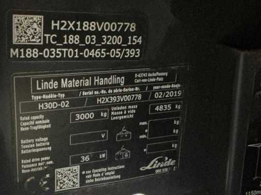 2019 Linde H30D-02 Vorkheftruck