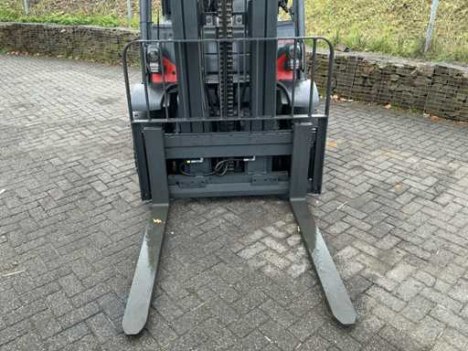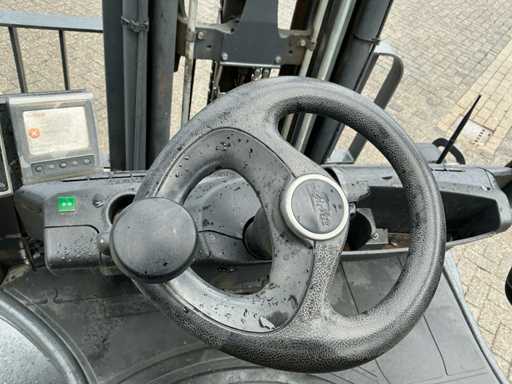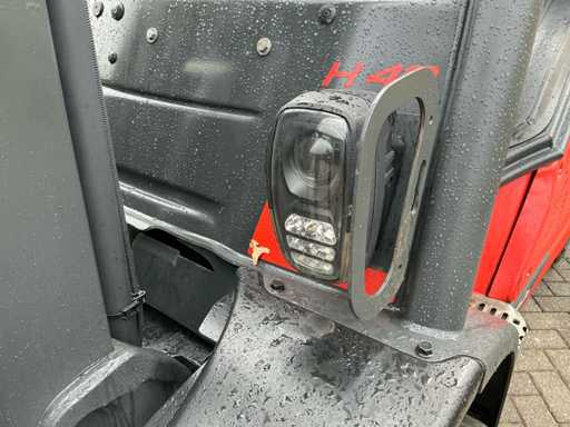 Voorzien van: side-shift, Grammer mechanisch geveerde stoel, mini-lever bediening op armleuning, verstelbare stuurkolom, trekhaak, led-werklampen, verlichting, Linde dubbele aandrijfpedalen voor het regelen van vooruit/achteruit rijden en remmen, Hydrostatische besturing terugslagvrij, controlelampjes op het display voor motoroliedruk, oververhitting van de motor, parkeerrem, hoorbaar waarschuwingssignaal voor motor- en