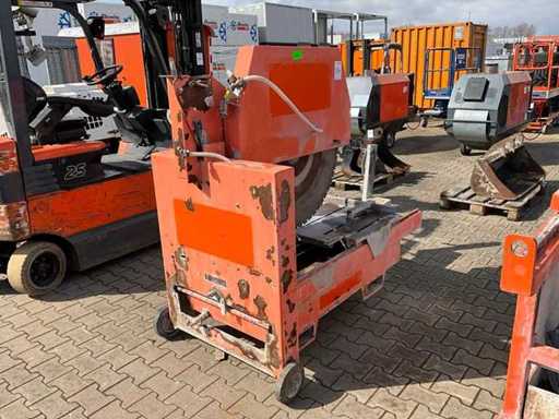 watergekoeld; toepassing: beton / poroton / natuursteen / zandsteen / keramische tegels; maximale zaagdiepte 370 mm; zaaglengte 660 mm; tafelbreedte 780 mm; 7,5 kW; diamant cirkelzaagblad; verrijdbaar; heftruck vorksleuven; working condition;