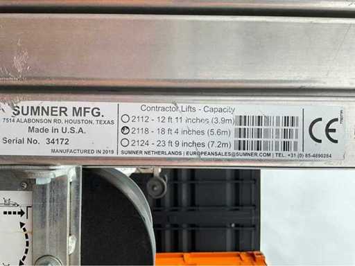 2019 Sumner Manufacturing 2118 Materiaallift / kanaallift